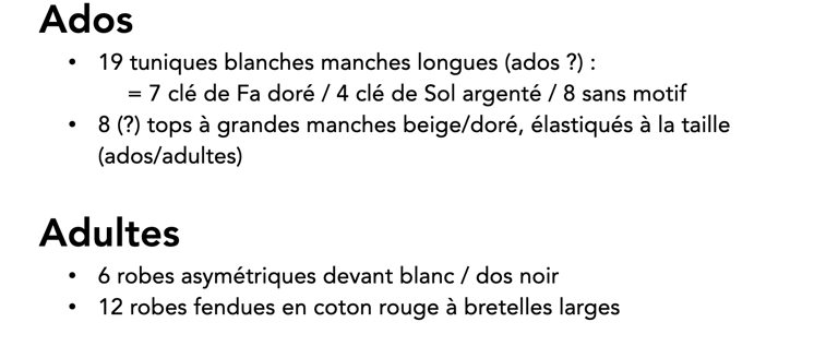 Nous donnons d'anciens costumes qui ne seront plus utilisés. N'hésitez pas à nous contacter!